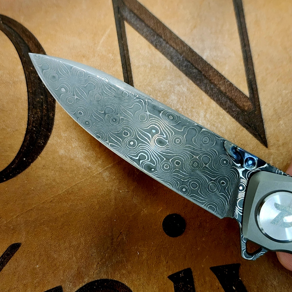 Dreamtech K610TCD Titanium/Carbon Fiber Frame Lock Damascus Drop Point Preowned