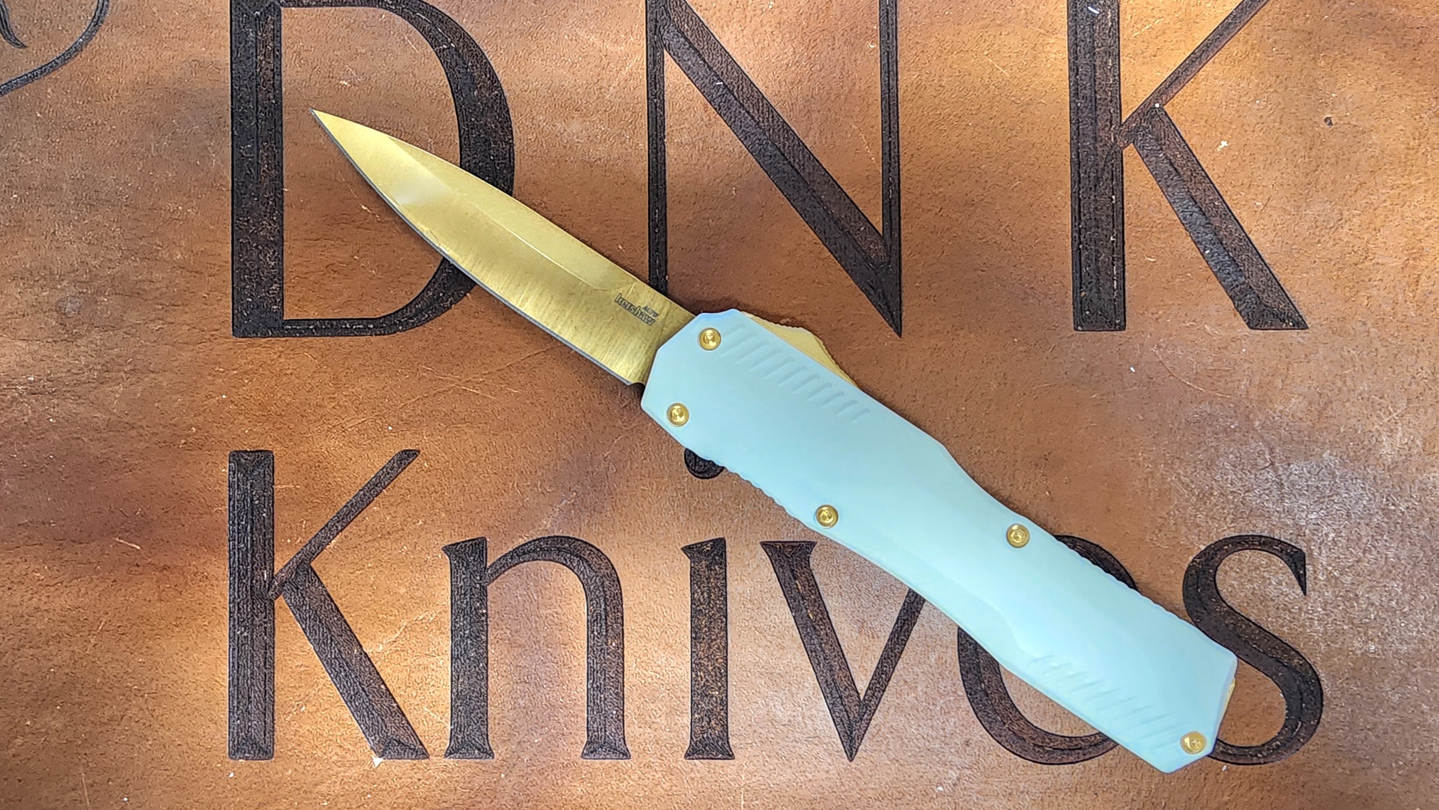 Kershaw Livewire 9000WGLD Beskar White Aluminum Gold Magnacut Spearpoint