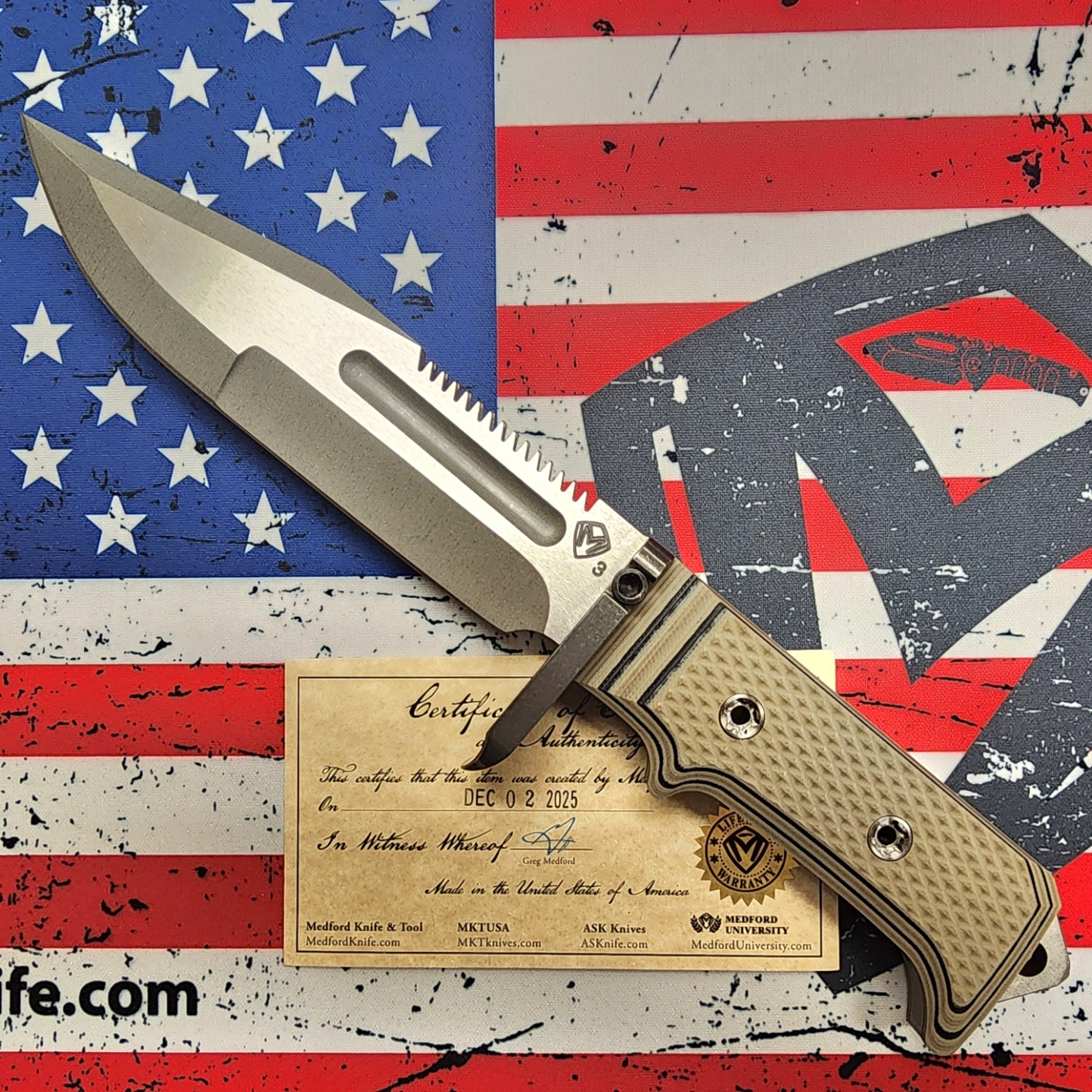 Medford USMC Raider Tumbled 3V Blade/Hilt Multi-Layer G10 Handles Black Kydex Sheath