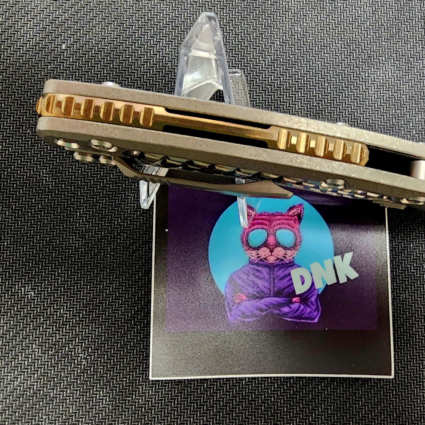 - Handle: Titanium, Frag Pattern, Stonewashed, Bronze Backspacer
