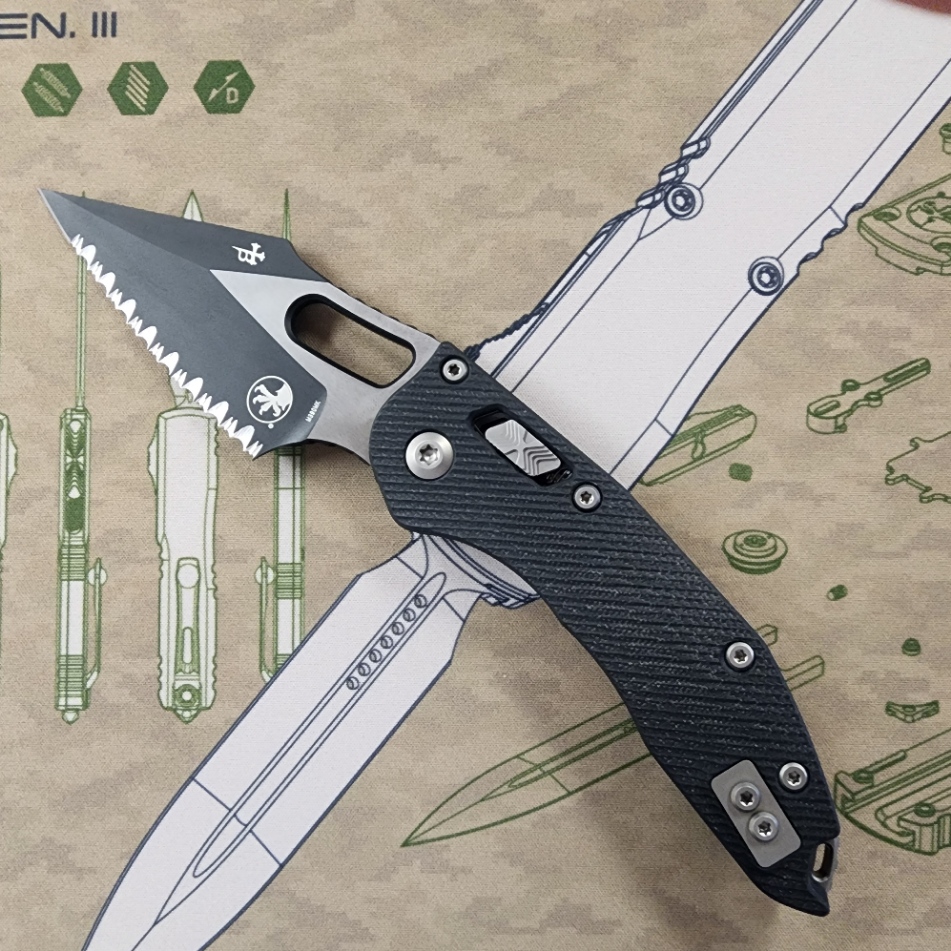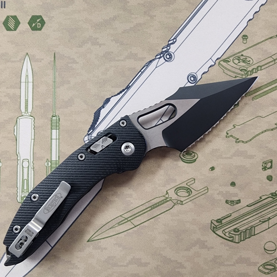 Microtech Stitch 169RL-3FLGTBK Ram-Lok Two Tone Full Serrated M390MK Fluted Black G10