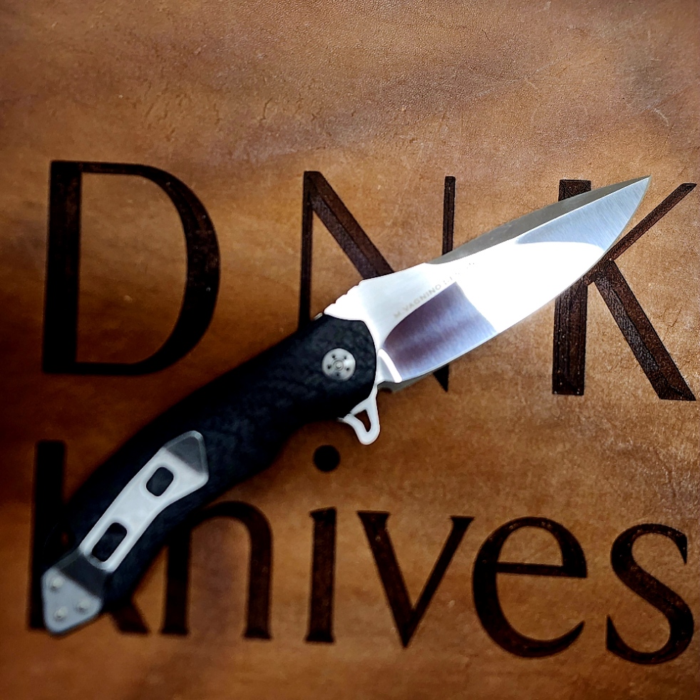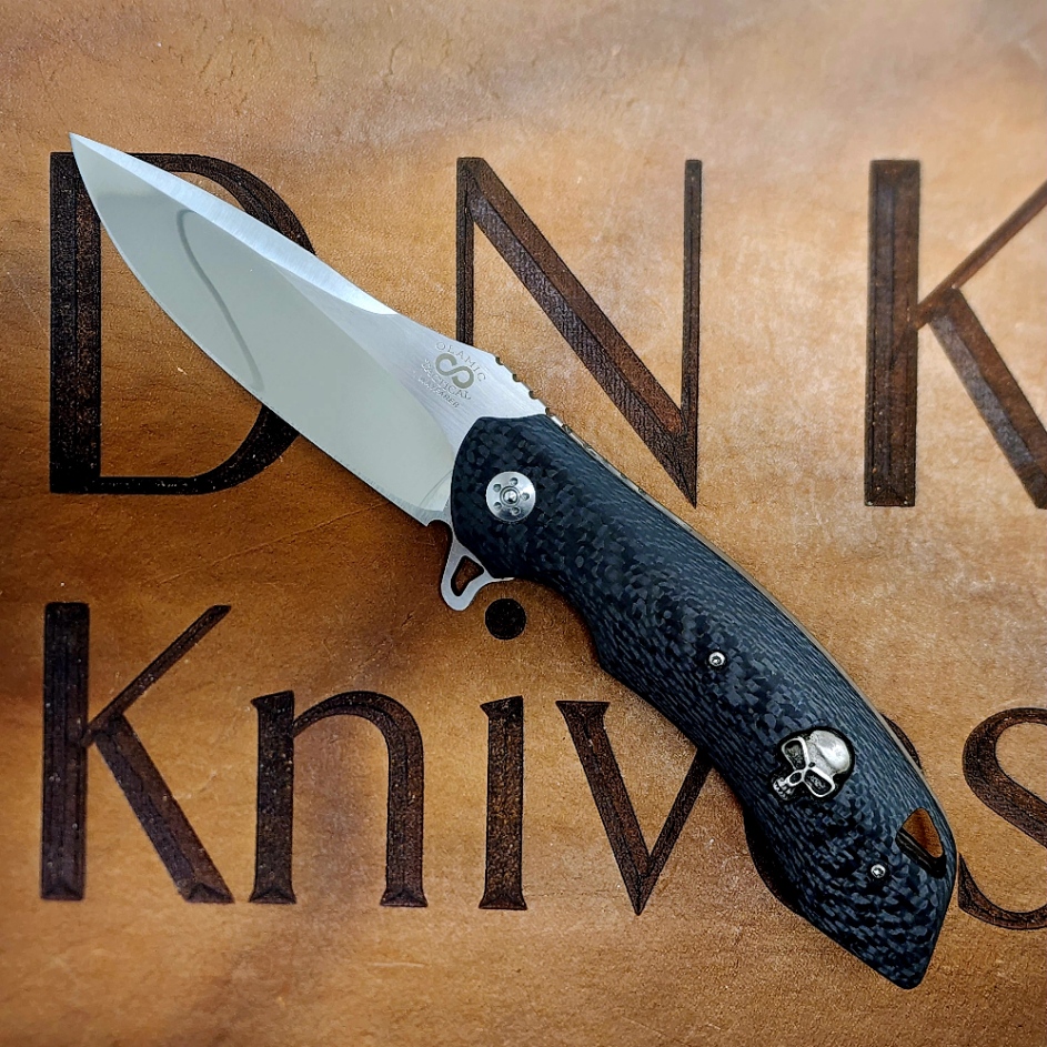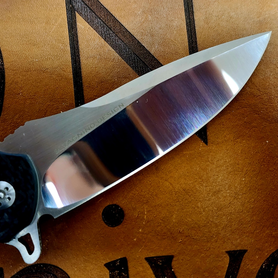 Olamic Cutlery Wayfarer W141 Preowned 9-17-2013 S35VN Mirror/Satin Blade Carbon Fiber