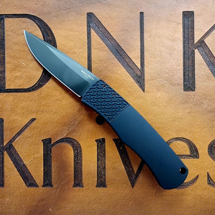 We are proud to call Mike “Whiskers” and Denise Allen friends of ours for over 20 years. It’s great that all these many years later we are able to offer this innovative Pro-Tech Whiskers collaboration knife based on Mike’s fantastic bolster release mechanism. Upon first glance there is nothing about the BR-1 to make you suspect it’s an automatic knife (no button of course). The BOLSTER section of the handle slides up – this very deliberate movement is what fires the blade open and also unlocks it from the open position.