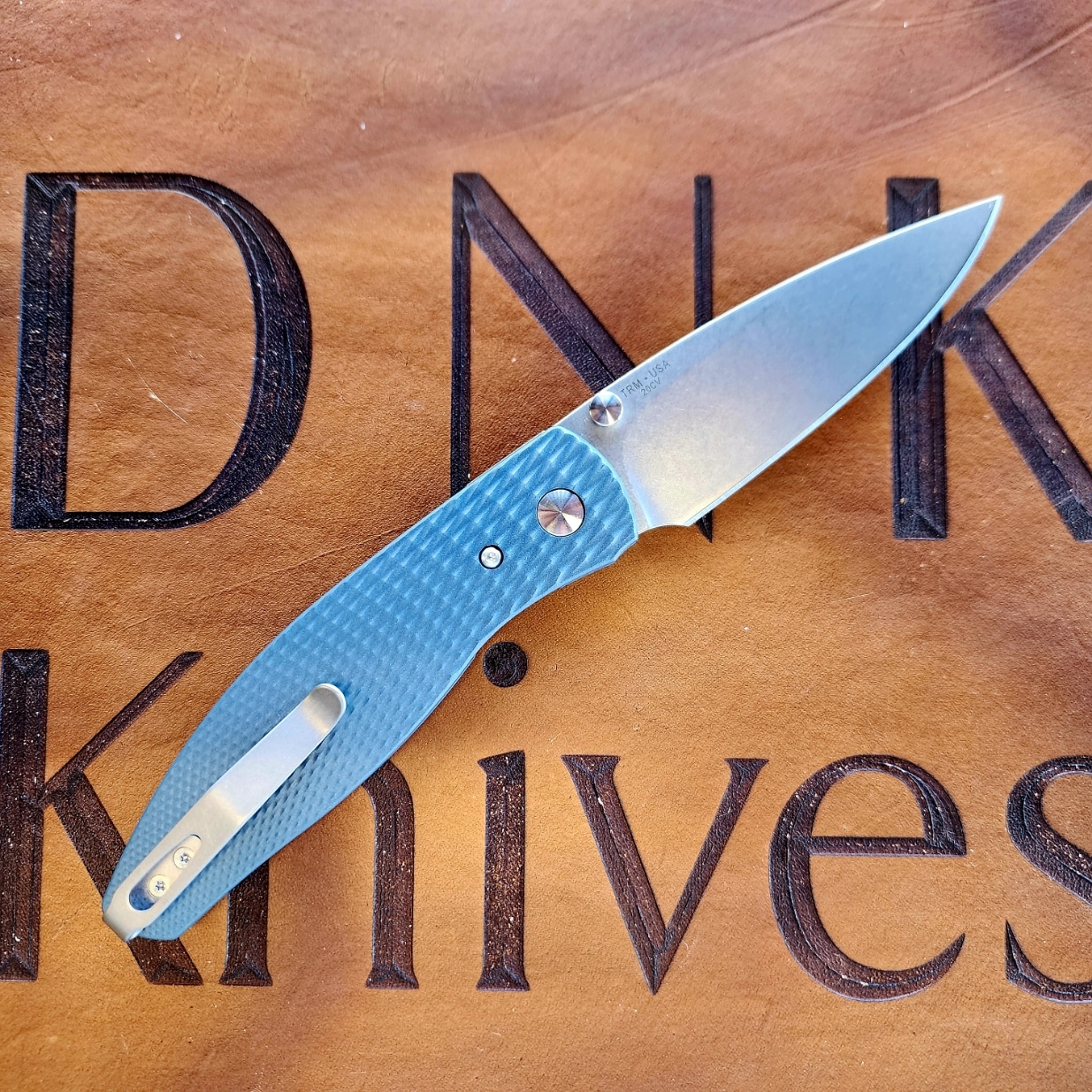 Three Rivers Mfg Atom 3D Lizard Skin Custom Blue Titanium Scales Stonewash 20CV Blade
